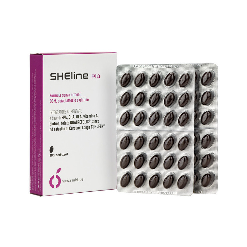 Descrizione Integratore alimentare a base di EPA, DHA, GLA, vitamina A, folato Quatrefolic, zinco ed estratto di Curcuma longa CurQfen.