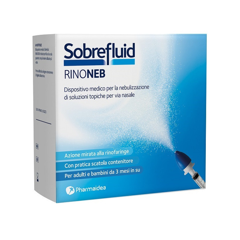 Il dispositivo medico Sobrefluid RINONEB è indicato per l'uso di un solo paziente, ma può essere utilizzato più volte. Utilizzare il prodotto esclusivamente per l’uso a cui è destinato. Prima dell’utilizzo leggere attentamente il foglietto illustrativo. L'agocannula e la siringa sono destinati al multiuso. Riempire la siringa solo aspirando la soluzione mediante l’agocannula. Prima di ogni utilizzo controllare che tutti i componenti siano integri e non danneggiati. Per il riutilizzo, effettuare la pulizia seguendo le istruzioni indicate nel paragrafo Pulizia. Conservare il prodotto al riparo da umidità, luce e fonti di calore. Non utilizzare il dispositivo nei bambini al di sotto dei 3 mesi di età. Utilizzare il dispositivo medico finché siano mantenute l’integrità meccanica e la funzione di nebulizzazione e comunque per non più di 6 mesi dalla data di primo utilizzo. Tenere fuori dalla portata e dalla vista dei bambini. Non utilizzare dopo la data di scadenza riportata sulla confezione.