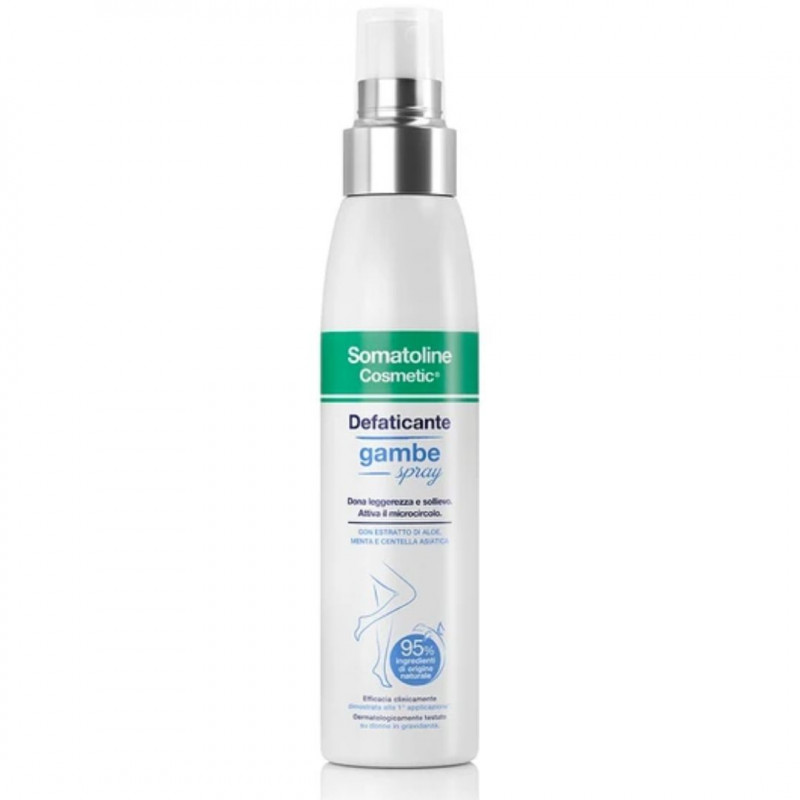 Somatoline Spray defaticante con il 95% di ingredienti di origine naturale, da applicare in qualsiasi momento della giornata dona leggerezza e sollievo immediati alle gambe pesanti.