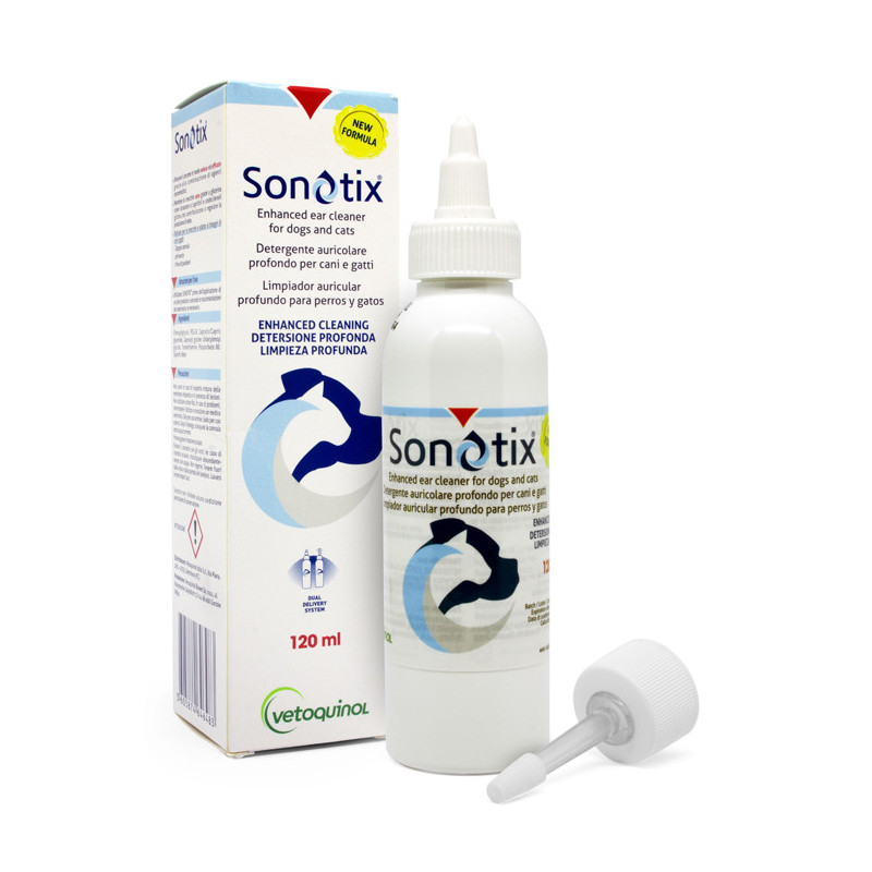 Descrizione Detergente auricolare riequilibrante per cani e gatti. La formula completa di Sonotix fornisce una tripla azione: • rimuove il cerume in modo rapido e efficace grazie alla comunicazione di agenti ceruminolitici; • mantiene le orecchie sane grazie a glicerina come idratante e capriloil e undecilenoil glicina che contribuiscono a regolare la produzione di sebo; • delicato per tutte le orecchie e adatto ai bisogni di cani e gatti. Sonotix ha un pH neutro, è privo di parabeni per una buona tollerabilità.