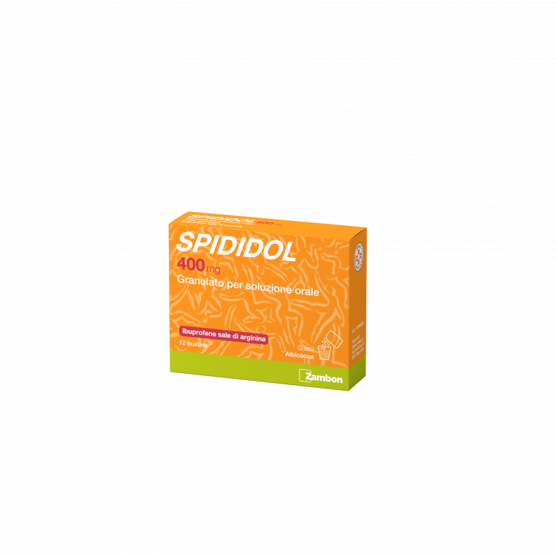 Adulti e ragazzi oltre i 12 anni: 1 compressa rivestita con film o 1 bustina, due-tre volte al giorno. La dose massima giornaliera non deve superare i 1200 mg al giorno. - Anziani: I pazienti anziani dovrebbero attenersi ai dosaggi minimi sopraindicati. Nel trattamento dei pazienti anziani la posologia deve essere attentamente stabilita dal medico che dovrà valutare una eventuale riduzione dei dosaggi sopraindicati. - In pazienti con alterata funzionalità renale, epatica o cardiaca i dosaggi dovrebbero essere ridotti. - Insufficienza epatica: cautela deve essere adottata nel trattamento dei pazienti con funzionalità epatica ridotta. In tali pazienti è opportuno ricorrere al monitoraggio periodico dei parametri clinici e di laboratorio, specialmente in caso di trattamento prolungato (vedere par. 4.4). L’uso di SPIDIDOL è controindicato in pazienti con grave insufficienza epatica (vedere par. 4.3). - Insufficienza renale: cautela deve essere adottata nel trattamento di pazienti con funzionalità renale ridotta. In tali pazienti è opportuno ricorrere al monitoraggio periodico dei parametri clinici e di laboratorio, specialmente in caso di trattamento prolungato (vedere par. 4.4). L’uso di SPIDIDOL è controindicato in pazienti con grave insufficienza renale (vedere par. 4.3). In adolescenti (di età compresa ≥ 12 anni ai < 18 anni): nel caso l’uso del medicinale sia necessario per più di 3 giorni negli adolescenti, o nel caso di peggioramento della sintomatologia deve essere consultato il medico. La dose efficace più bassa deve essere usata per il periodo più breve ad alleviare i sintomi (vedere par. 4.4). Modo di somministrazione: La compressa deve essere deglutita con un po’ d’acqua. Per pazienti con uno stomaco più sensibile si raccomanda l’assunzione con il cibo. Il granulato va sciolto in un bicchiere d'acqua (50-100 ml) ed assunto subito dopo la preparazione della soluzione. Il granulato per soluzione orale deve essere assunto con il cibo.