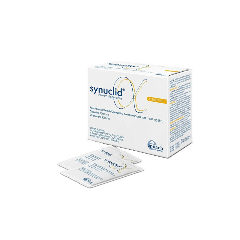 Modalità d'uso Si consiglia l'assunzione di una bustina di Synuclid al giorno, preferibilmente a stomaco pieno. Disperdere il contenuto di una bustina in un bicchiere d'acqua (circa 200 ml), mescolare ed assumere. Synuclid può essere assunto anche mescolato con acqua gelificata, yogurt, succhi di frutta o altri alimenti.
