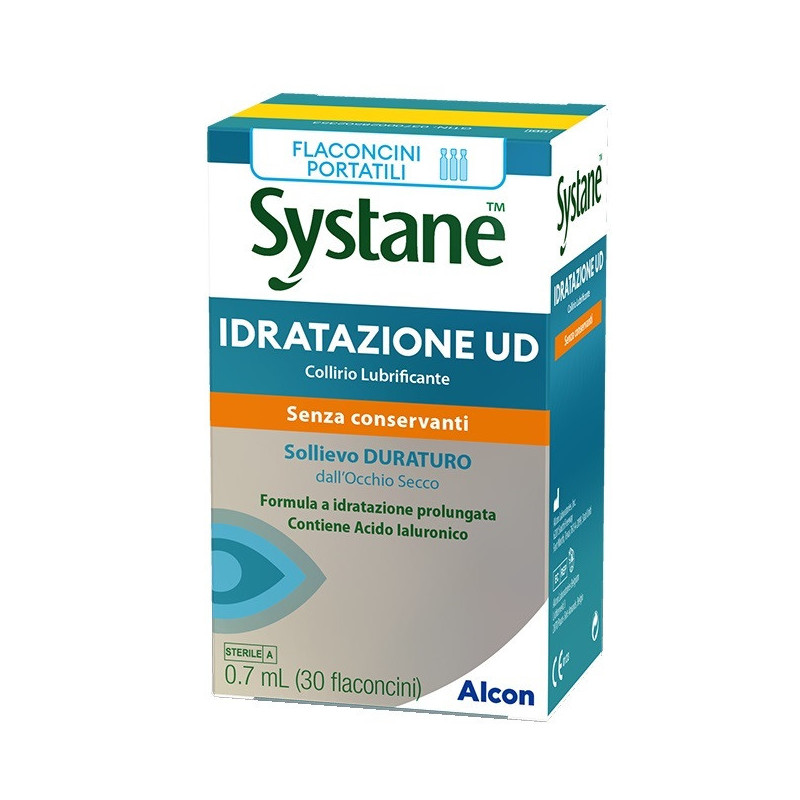 Avvertenze Le persone allergiche a uno qualsiasi degli ingredienti contenuti in SYSTANE IDRATAZIONE UD Collirio Lubrificante non devono utilizzare questo prodotto. È essenziale seguire le indicazioni dello specialista di fiducia e tutte le istruzioni riportata sull'etichettatura per un uso corretto del prodotto. Se si manifestano fastidio persistende agli occhi, eccessiva lacrimazione, visione alterata o arrossamento dell'occhio, smettere di usare SYSTANE IDRATAZIONE UD Collirio Lubrificante e consultare lo specialista di fiducia perché il problema potrebbe diventare più grave. SYSTANE IDRATAZIONE UD Collirio Lubrificante non è indicato per l'uso come detergente o disinfettante per lenti a contatto. Non utilizzare SYSTANE IDRATAZIONE UD Collirio Lubrificante per immergervi o disinfettare le lenti. L'offuscamento temporaneo della visione o altri disturbi visivi possono alterare la capacità di guidare o utilizzare macchinari. in caso di visione offuscata dopo l'instillazione, attendere che la visione torni nitida prima di mettersi alla guida o utilizzare macchinari. - Solo per uso oculare. - Sigillo sicurezza: non usare se la confezione o i flaconcini monodose (imballo sterile) sono danneggiati o sono stati aperti involontariamente prima dell'uso. Il prodotto potrebbe essere contaminato e causare una grave infezione dell'occhio. - Per evitare contaminazioni, non porre mai l'estremità contagocce del flaconcino a contatto con alcuna superficie. - Dopo l'uso gettare la soluzione eventualmente rimasta per evitare contaminazioni. Non conservare la soluzione contenuta in un flaconcino aperto. Non riutilizzare. - Ogni flaconcino è confezionato esclusivamente solo per un singolo uso. Il suo riutilizzo può aumentare il rischio di infezione oculare. - Se ingerito, consultare il medico. - Se la soluzione cambia colore o diventa torbida, non utilizzare. - Questo prodotto contiene acido borico e borato di sodio in quantità sicura se usato secondo le istruzioni dell'etichettatura. - Utilizzare entro la data di scadenza. - Tenere fuori dalla portata dei bambini.