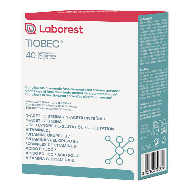Ingredienti Agenti di carica: cellulosa microcristallina, carbonato di calcio; N-acetilcisteina, L-glutatione ricoperto (gommalacca); agenti antiagglomeranti: carbossimetilcellulosa sodica reticolata, mono- e digliceridi degli acidi grassi, sali di magnesio degli acidi grassi, biossido di silicio; agenti di rivestimento: idrossipropilmetilcellulosa, cellulosa microcristallina, sali di magnesio degli acidi grassi, gomma lacca, polivinilpirrolidone; vitamina C (acido L-ascorbico), vitamina B3 (nicotinamide), vitamina E (acetato di DL-alfa-tocoferile); stabilizzante: polivinilpirrolidone; vitamina B1 (mononitrato di tiamina), vitamina B6 (cloridrato di piridossina), vitamina D (colecalciferolo), folato (acido pteroil-monoglutammico).