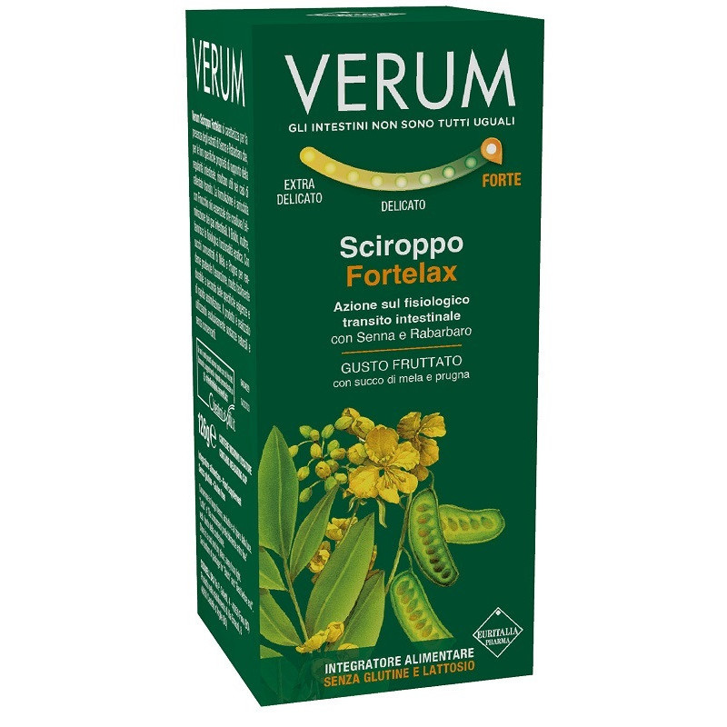 Per una fisiologica azione sul transito intestinale Verum Lax Sciroppo Fortelax si caratterizza per la presenza degli estratti liofilizzati di Senna e Rabarbaro che, per le loro specifiche proprietà di supporto della regolarità intestinale, risultano utili nei casi di rallentato transito. La formulazione è arricchita con finocchio olio essenziale che coadiuva l'eliminazione dei gas intestinali. Il boldo, inoltre, favorisce la fisiologica funzionalità epatica. Con succhi concentrati di mela e prugna per renderne gradevole l’assunzione. Adatto per chi non desidera o ha difficoltà nell’assumere le compresse. Di rapida assimilazione e facilmente dosabile. Il prodotto è realizzato utilizzando esclusivamente sostanze naturali e senza conservanti.