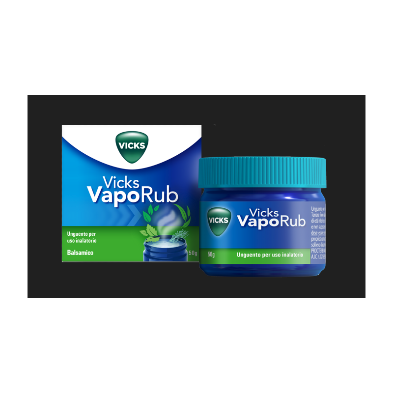 Vicks Vaporub è controindicato nei bambini fino a 30 mesi di età e le inalazioni di vapore sono controindicate nei bambini sotto i 12 anni (vedere paragrafo 4.3). I bambini devono sempre essere sorvegliati. Vicks Vaporub unguento si può impiegare in due modi: 1) Uso topico (adulti e bambini sopra i 30 mesi di età) Applicare esternamente frizionando dapprima per 3 - 5 minuti il petto, la gola ed il dorso e poi stendere uno spesso strato sul petto. Ripetere il trattamento 2 volte al giorno di cui una la sera prima di dormire. Non frizionare più di due volte al giorno sulla parte anteriore del torace, sul collo e sul dorso. Indossare abiti ampi per facilitare l’inalazione dei vapori. 2) Inalazioni (adulti e bambini al di sopra dei 12 anni di età) Sciogliere 2 cucchiaini da caffè (2x5 ml) in mezzo litro di acqua calda (non bollente) e aspirare il vapore liberato, per un tempo non superiore a 10 min. Al fine di evitare il rischio di gravi ustioni non riscaldare la miscela una seconda volta né riscaldare la miscela durante l’inalazione (vedere paragrafo 4.4). Non riscaldare nel microonde. Non superare le dosi consigliate. La durata del trattamento non deve superare i 3 giorni. IL PRODOTTO NON DEVE ESSERE INGERITO