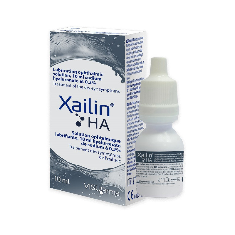 Avvertenze Non utilizzare se l'anello di sicurezza sul tappo del flacone non è integro. Non usare in caso di allergia al prodotto. Non toccare la punta del flacone con l'occhio o con qualsiasi altra superficie. Non condividere Xailin HA con altre persone. Può causare un leggero offuscamento della vista dopo l'applicazione, attendere che la visione sia limpida prima di guidare o usare macchinari. Non utilizzare dopo la data di scadenza indicata sulla confezione o stampata sul flacone. Tenere fuori dalla portata e dalla vista dei bambini. Solo per uso oftalmico esterno non ingerire. Consultare il proprio medico, farmacista prima di usare il prodotto in caso di gravidanza o allattamento.