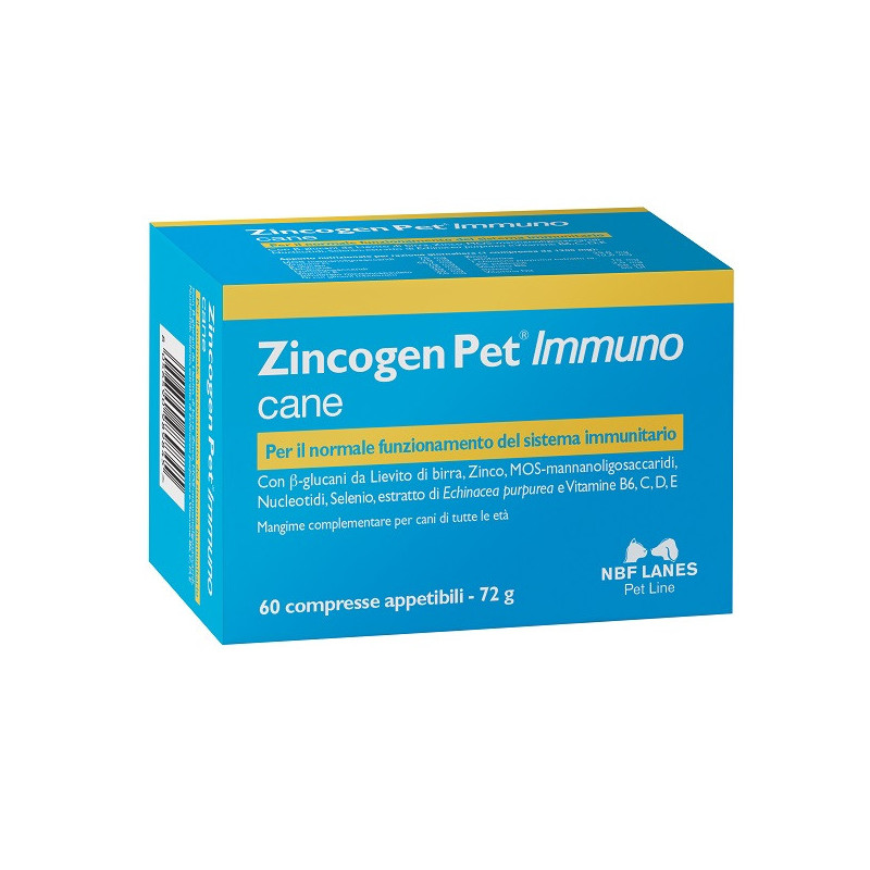 Con beta-glucani da Lievito di birra, zinco, MOS-mannanoligosaccaridi, nucleotidi, selenio, estratto di echinacea purpurea e vitamine B6, C, D, E.